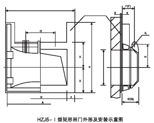 Shape and Installation Dimensions of HZJ5-Ⅰ Rectangular Gate
