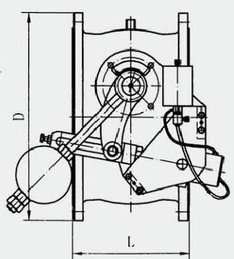开泵时、阀板受介质的压力带动阀轴开始旋转,带动连杆沿活塞 杆上的空行程导向槽实现阀板0~60°的快开,连杆走完导向槽 后仍受介质推动作用,接着活塞杆伸出,使阀板作60°~90°范 围缓开和慢开阶段,阀门开启。停泵时,阀板受回流介质的压力 带动阀轴开始回转,连杆沿活塞杆上的空行程导向槽快速旋转,实 现阀门快关,连杆走完导向槽后,受到液压缸的阻尼作用(0~30° 范围),实现阀板的缓关和慢关。