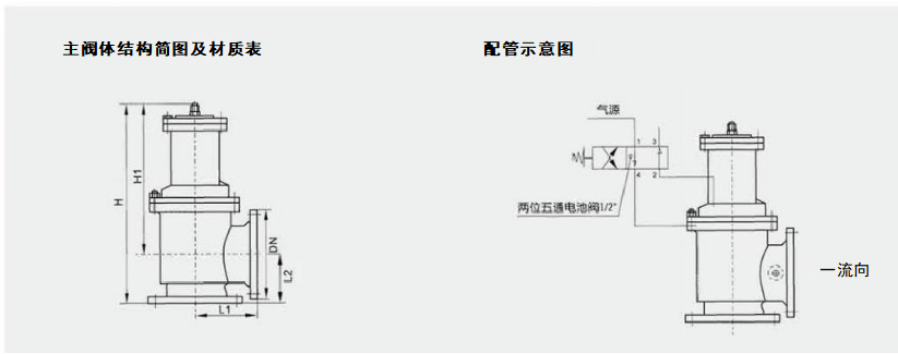 · 阀盖顶部和阀体侧面预留有螺孔,压力源经控制管线分别进出 上、下控制腔。通过电磁阀控制上、下腔压力而控制排泥阀开启 或关闭,当出现控制气源突然消失的意外时,排泥阀可在进口 水压下保持关闭。(外部压力控制源为气源)